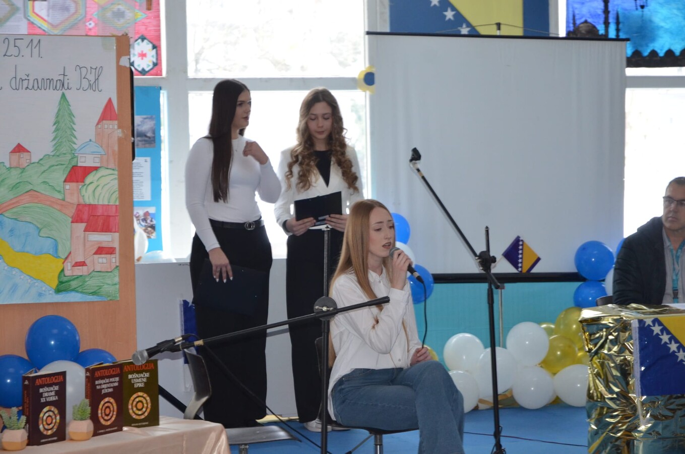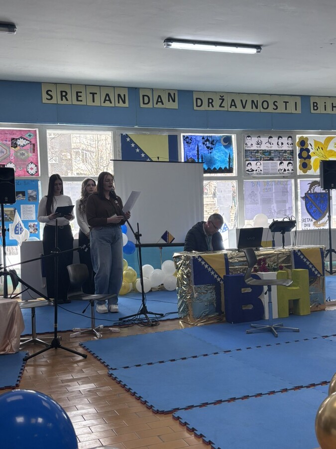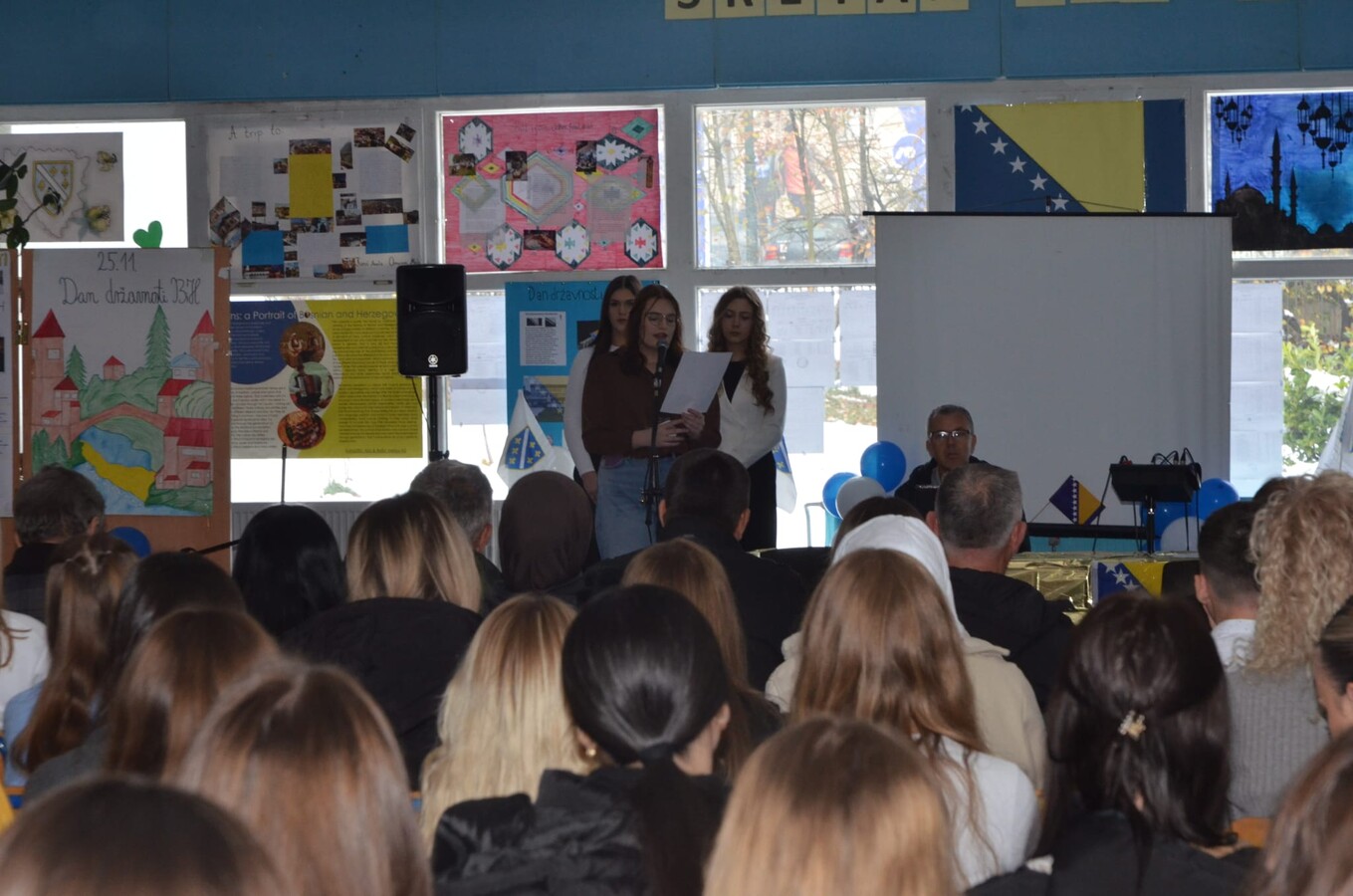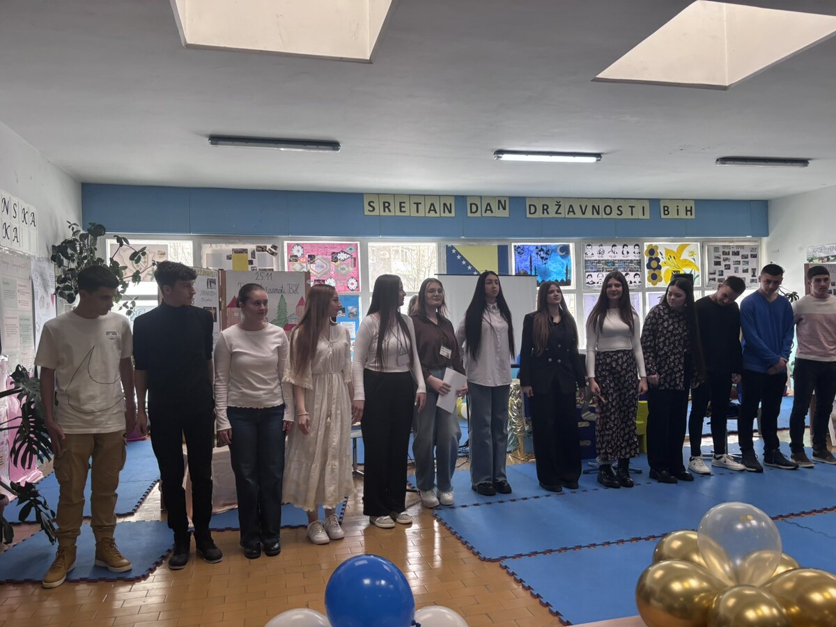 Danas, 24.11.2025. u svečanoj i dostojanstvenoj atmosferi, učenici i profesori naše škole obilježili su jedan od najvažnijih datuma u historiji naše države – 25. novembar, Dan državnosti Bosne i Hercegovine. Program je otvoren izvođenjem himne Bosne i Hercegovine, nakon čega je uslijedio prigodan uvodni govor voditelja koji je naglasio historijski značaj ovog datuma i podsjetio na borbu, hrabrost i odlučnost naroda Bosne i Hercegovine da očuva svoju slobodu, identitet i suverenitet.