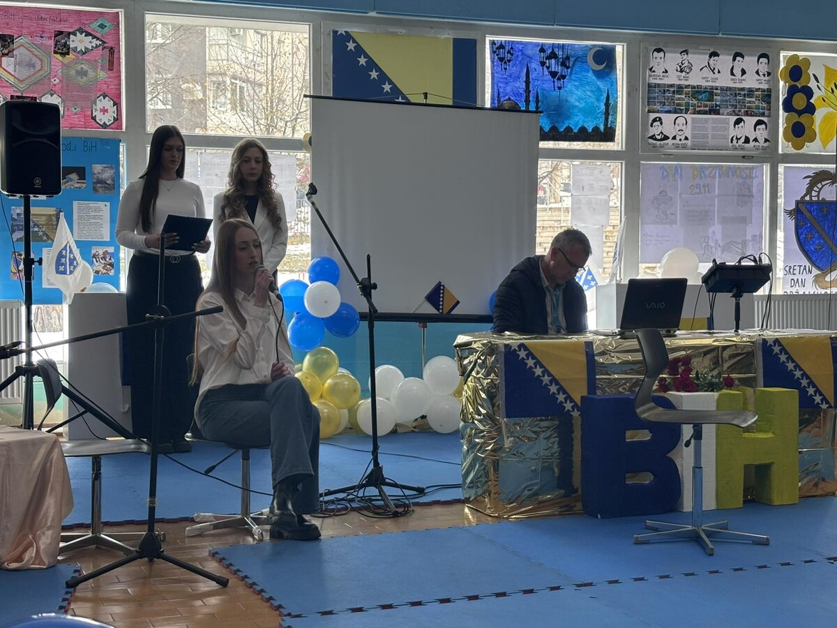 Prisutnima se zatim obratio direktor škole, gospodin Mensur Mešić, koji je u svom govoru istakao važnost očuvanja državnih vrijednosti, njegovanje kulture sjećanja i odgovornosti mladih prema budućnosti svoje domovine. Direktor je zahvalio učenicima i profesorima na predanom radu i pripremi programa, naglasivši da škola i zajednica zajedno čuvaju tradiciju i identitet Bosne i Hercegovine.
