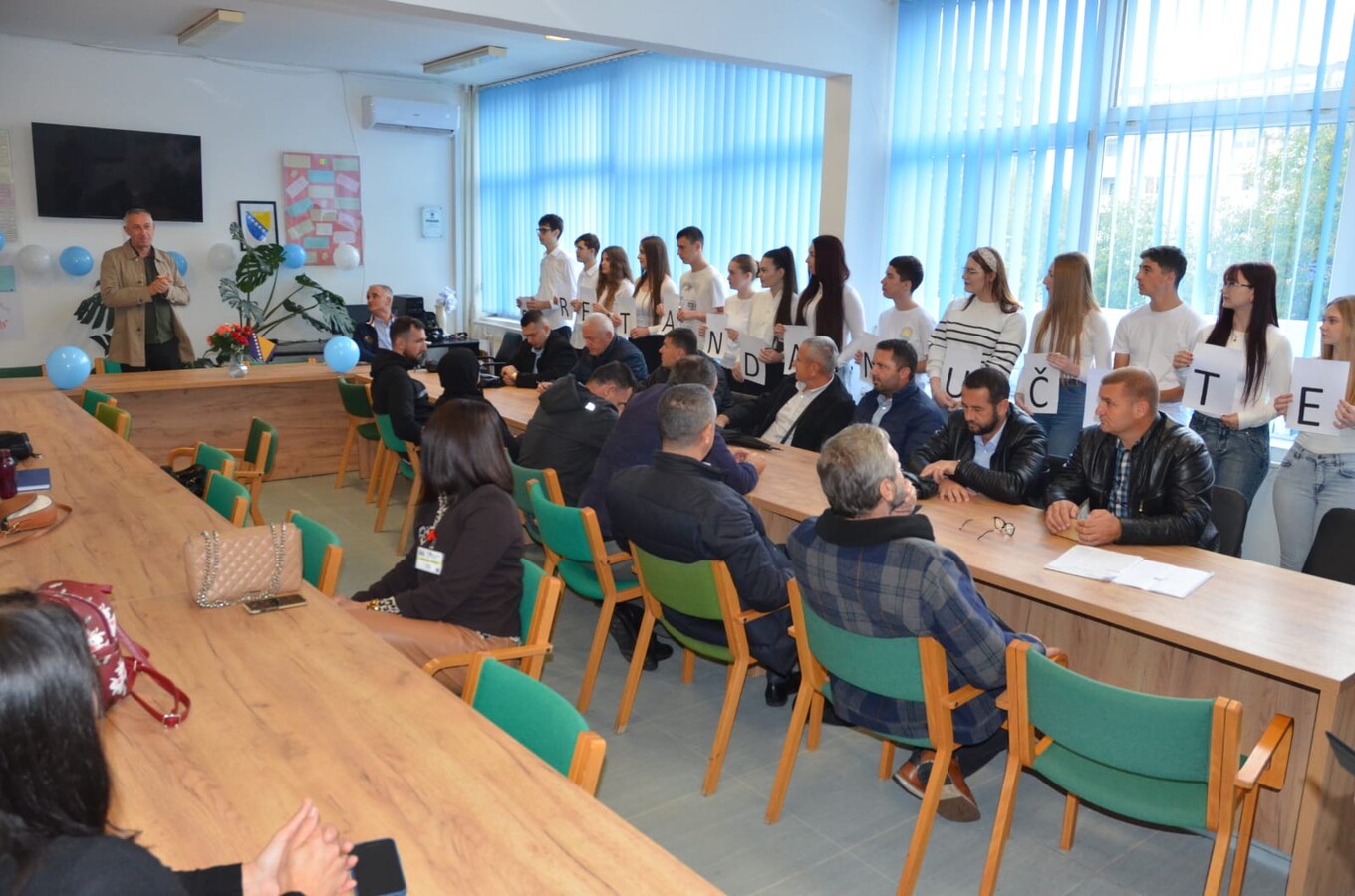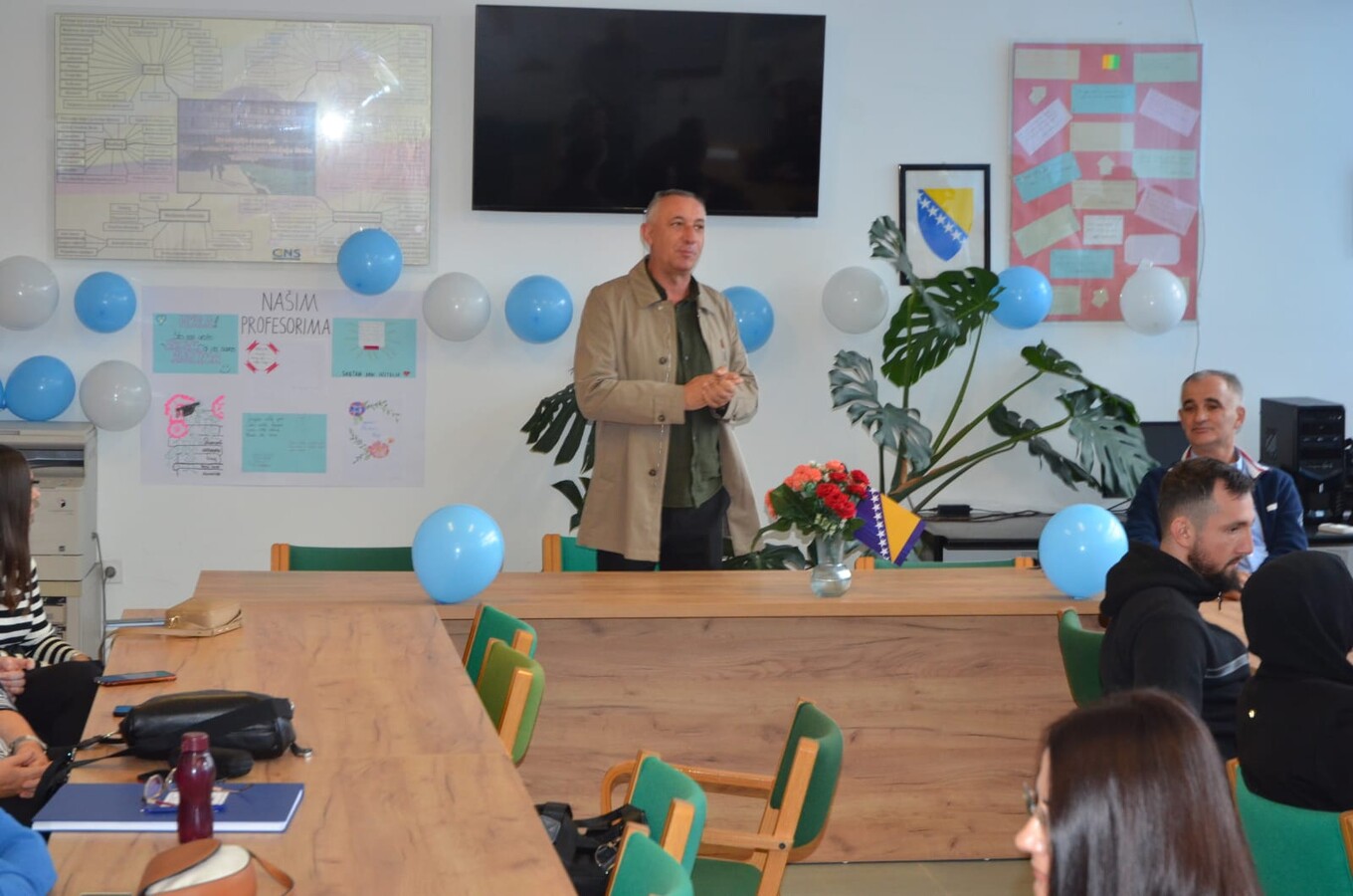 Učenici su inspirisani svojim profesorima pisali poruke za profesore koje su zalijepljene na zidu kod zbornice, i pripremili su malo iznenadenje za svečanu sjednicu Nastavničkog vijeća.